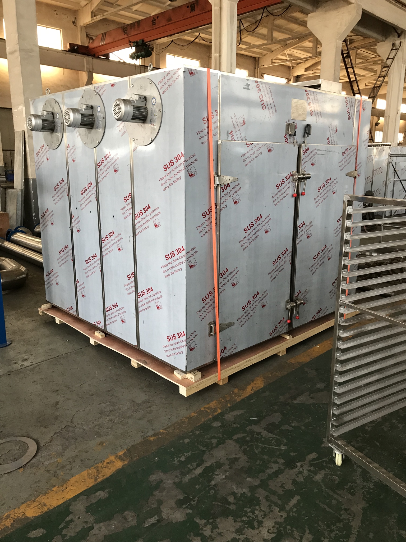 (7)每臺(tái)烘箱為雙門四車型,配有4輛烘車、96只烘盤(pán);烘車、盤(pán)采用優(yōu)質(zhì)304精細(xì)制作。