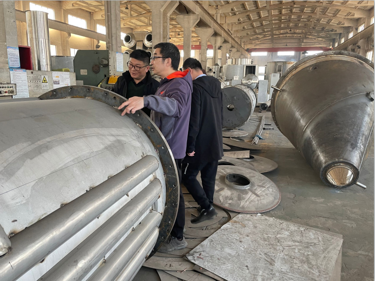 陽春三月春暖花開,一派欣欣向榮的景象,展露出春天可愛迷人的樣子。今日浙江一行客戶走訪了我公司,了解了非標(biāo)式真空耙式干燥機(jī)!力度公司是真空耙式干燥機(jī)專業(yè)生產(chǎn)制作廠家,該設(shè)備是我公司改進(jìn)設(shè)計(jì)的第三代產(chǎn)品,主要針對熱膨脹、同心度、軸密封、出料閥、傳動(dòng)結(jié)構(gòu)、攪拌形式、主軸強(qiáng)度、軸內(nèi)加熱、軸承裝配結(jié)構(gòu)、機(jī)械密封內(nèi)部結(jié)構(gòu)等基礎(chǔ)上,全面改用機(jī)械密封形式進(jìn)行真空干燥作業(yè),大大提高了密封性和使用壽命 ??蛇m應(yīng)制造大型高真空耙式干燥機(jī)。