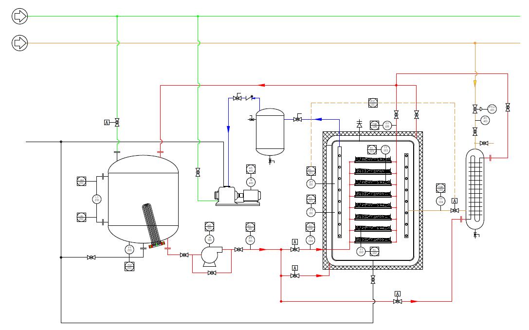 設(shè)備管路系統(tǒng)由控制閥門(mén)、真空泵、過(guò)濾器、安全閥、疏水閥等專(zhuān)用閥件構(gòu)成。關(guān)鍵部件為控制閥門(mén)和真空系統(tǒng)。