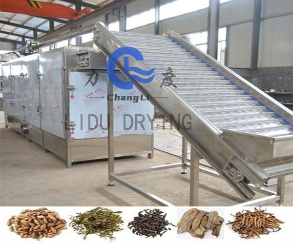5、帶式干燥機(jī)具有干燥速率高、蒸發(fā)強(qiáng)度高、產(chǎn)品質(zhì)量好等優(yōu)點(diǎn),適用于透氣性較好的片狀、條狀、顆粒狀物料的干燥,尤其適合于脫水蔬菜、中藥飲片等含水率高且干燥熱敏性物料的處理。