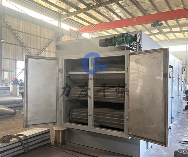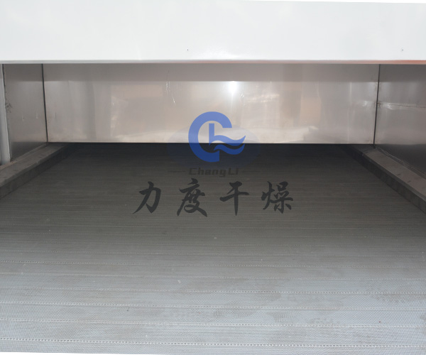 ?布料階段?:物料通過加料器均勻鋪設(shè)在網(wǎng)帶上(通常為12-60目不銹鋼絲網(wǎng)或沖孔板),網(wǎng)帶由傳動裝置驅(qū)動緩慢移動。