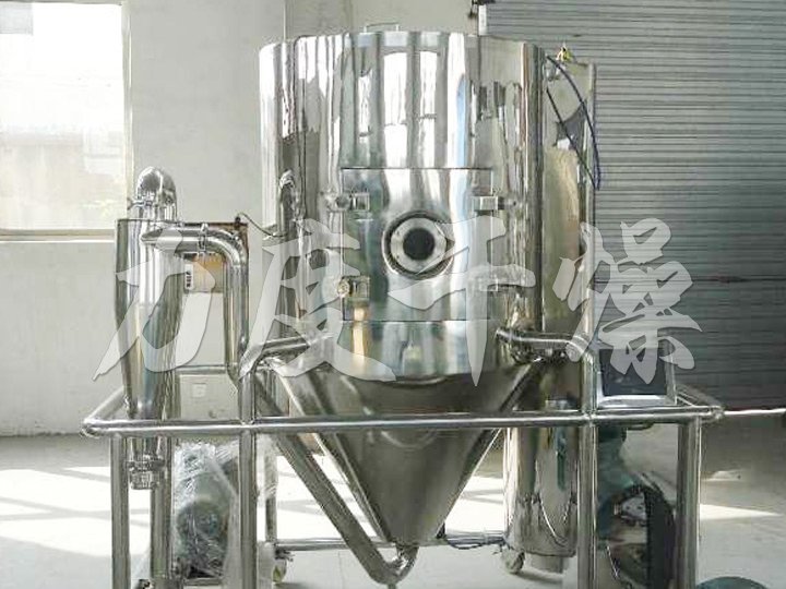 該機(jī)采用全封閉形式,所有部件均采用不銹鋼制造,配有三級(jí)凈化裝置,過濾后的空氣達(dá)十萬(wàn)級(jí)要求。筒體與頂部裝有冷壁裝置,使壁溫<80℃,干燥塔內(nèi)裝有氣刷掃塔裝置。經(jīng)該機(jī)干燥后的中藥浸膏粉,不會(huì)出現(xiàn)焦化變質(zhì)現(xiàn)象,大大增加了收粉率(95%以上),而且不會(huì)產(chǎn)生混藥現(xiàn)象和粘壁現(xiàn)象。