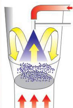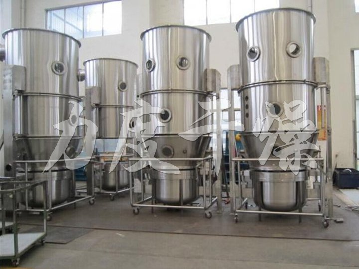 粉狀物料投入料斗密閉容器內(nèi),由于熱氣流的作用,使粉末懸浮呈流化狀循環(huán)流動,達(dá)到均勻混合,同時噴入霧狀粘結(jié)劑潤濕容器內(nèi)的粉末,使粉末凝成疏松的小顆粒,成粒的同時,由于熱氣流對其作高效干燥,水份不斷蒸發(fā),粉末不斷凝固,引過程重復(fù)進(jìn)行,形成理想的,均勻的多微孔球狀顆粒,在容器中一次完成混合,造粒,干燥三個工序。
